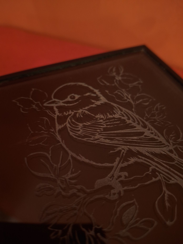 Une jolie boite à bijoux gravée d'un oiseau, simple et élégante. Motif : Rouge Gorge. Gravure artisanale à la main. Aucune gravure laser.