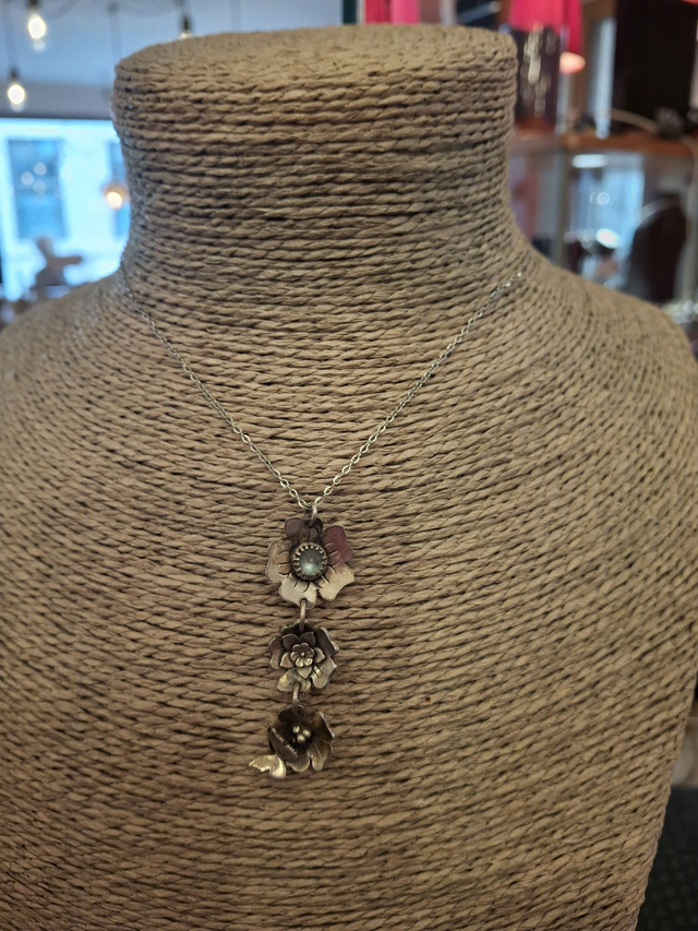 Collier pendentif argent Cascade de trois fleurs
