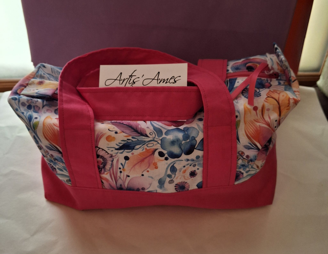 Une jolie trousse de toilette en coton coloré avec 2 anses pour le transport. Tissu enduit et poche à l'intérieur. Fermeture éclair.